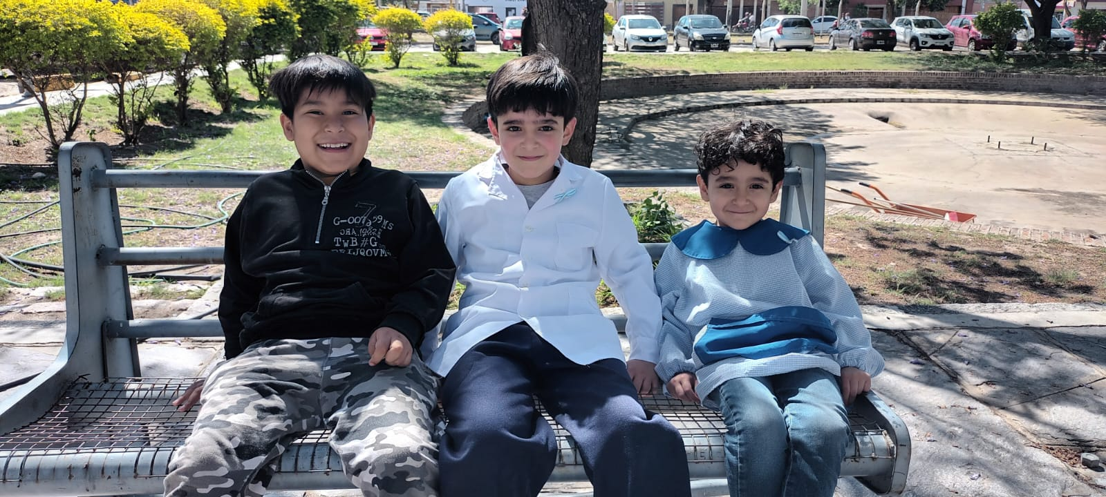 El Sr. Intendente de la Capital Dr. Gustavo Saadi y el Subsecretario Guillermo Perna, junto a los niños.